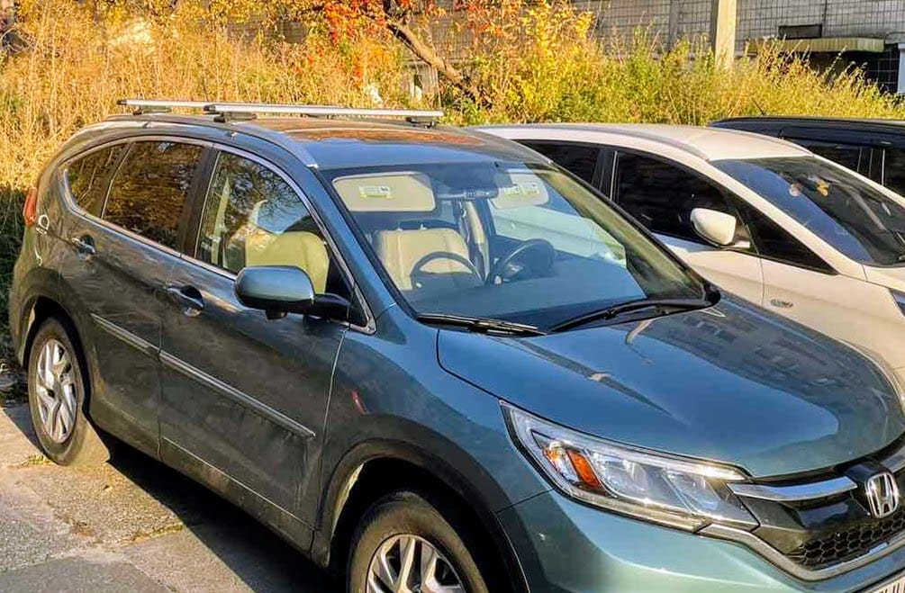 Багажник Honda CR-V 2012 - 2018 с алюминиевыми аэродинамическими поперечинами для установки в штатные места, предусмотренные заводом-изготовителем автомобиля.