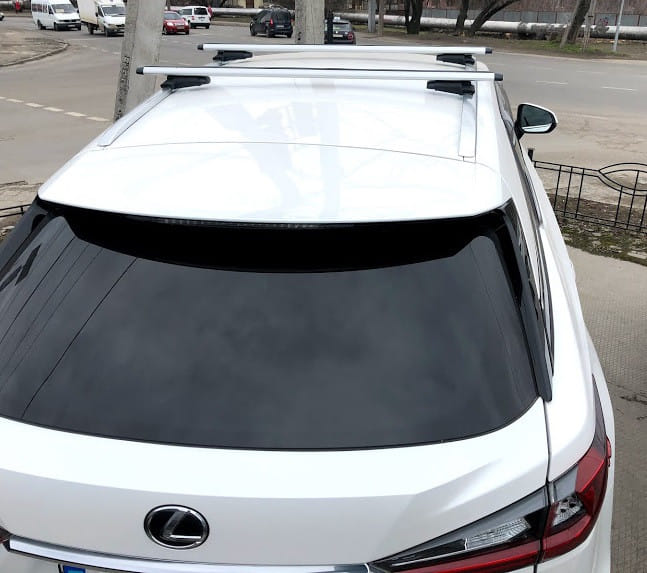 Багажник Lexus RX с алюминиевыми аэродинамическими поперечинами для установки в штатные места, предусмотренные заводом-изготовителем автомобиля.