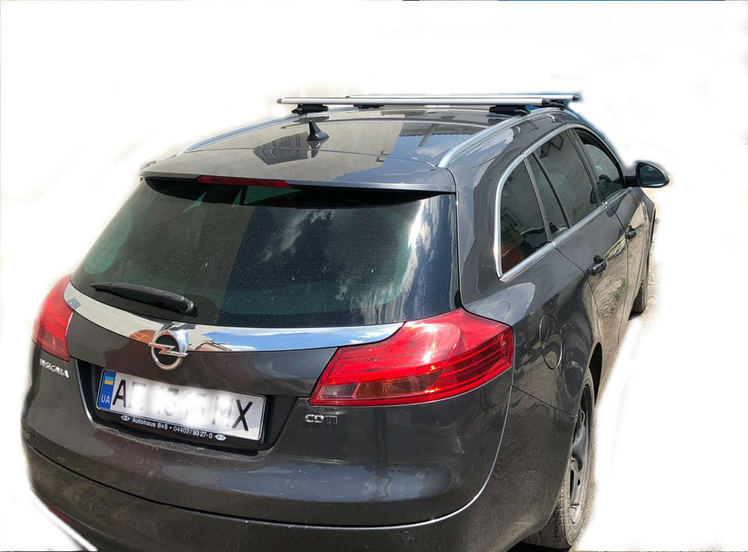 Багажник Opel Insignia 2008 – 2017 с алюминиевыми аэродинамическими поперечинами для установки в штатные места, предусмотренные заводом-изготовителем автомобиля.