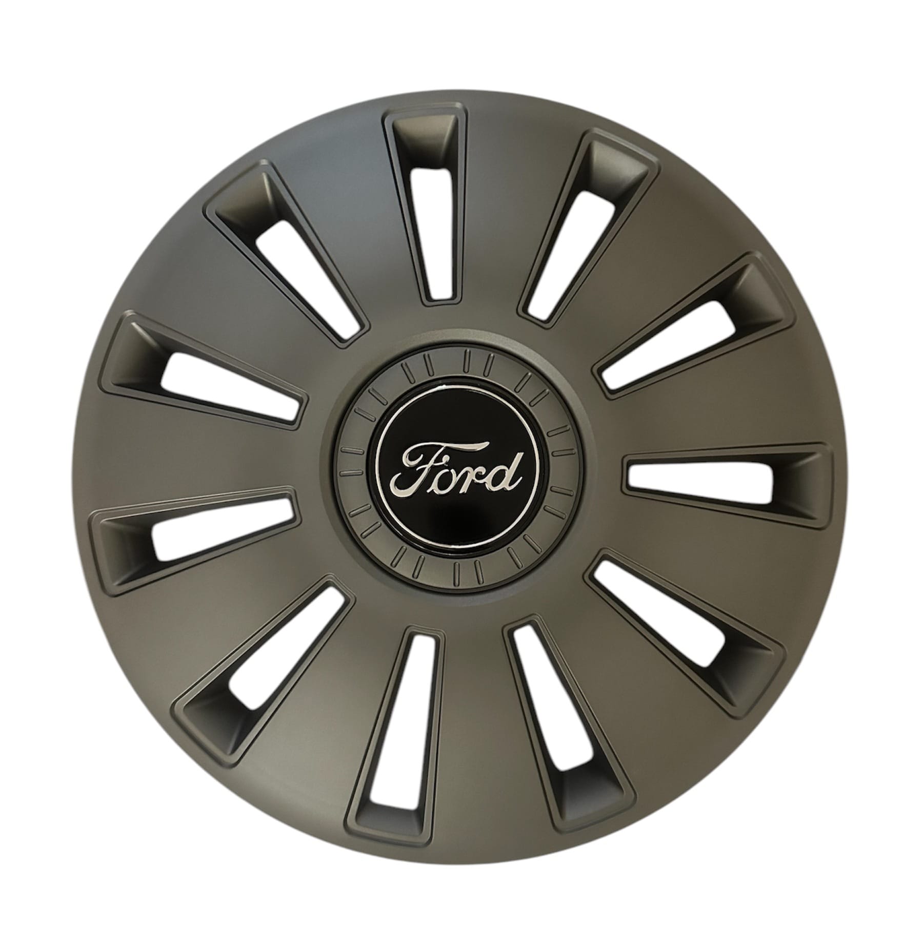 Колпак Колесный Рэкс с логотипом Ford. Радиус 16. Цена указана за комплект (4штуки). Цвет колпаков - графитовый металлик.