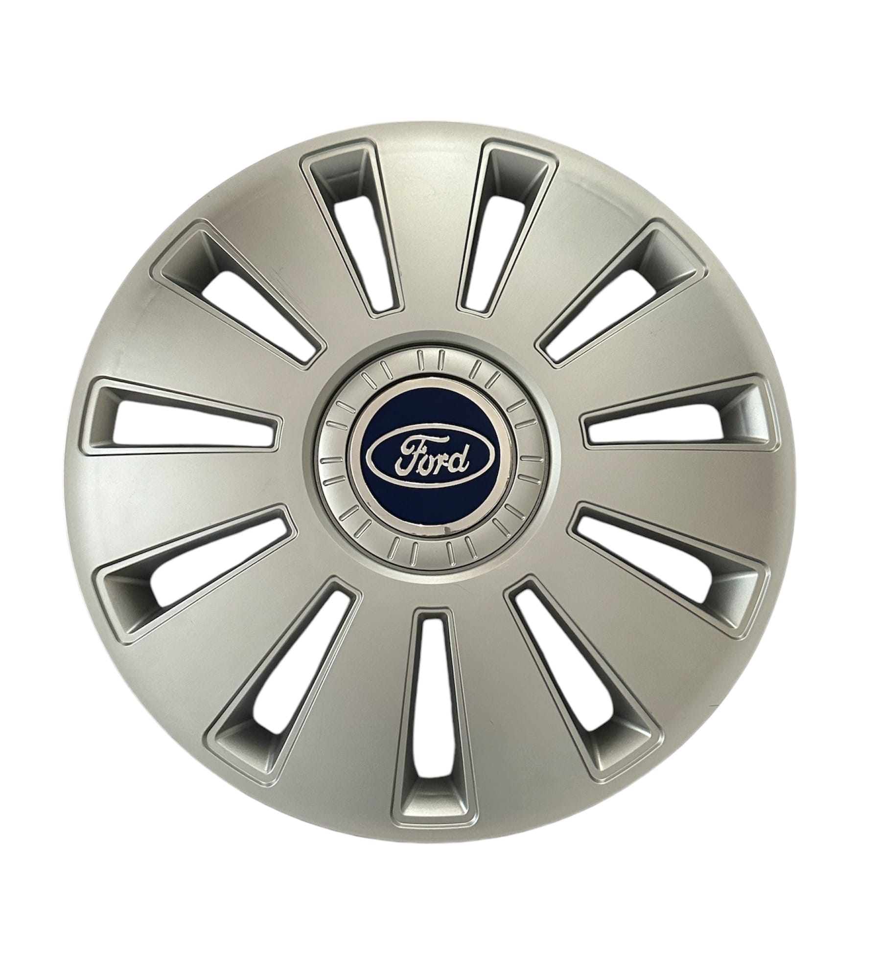 Колпак Колесный Рэкс с логотипом синего цвета Ford. Радиус 15. Цена указана за комплект (4штуки). Цвет колпаков - серебристый металлик.