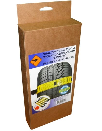 Пластиковые ремени противоскольжения CRUSER. Очень легко и быстро монтируются. Большой плюс пластиковых ремней в том, что их можно смонтировать на уже увязнувшее в грязи или снегу колесо. Пластиковые браслеты противоскольжения не наносят вреда шинам , дискам и кузову автомобиля. Изготовлены из морозоустойчивого пластика с применением полиамидного ремня и мощного быстрого зажима.
